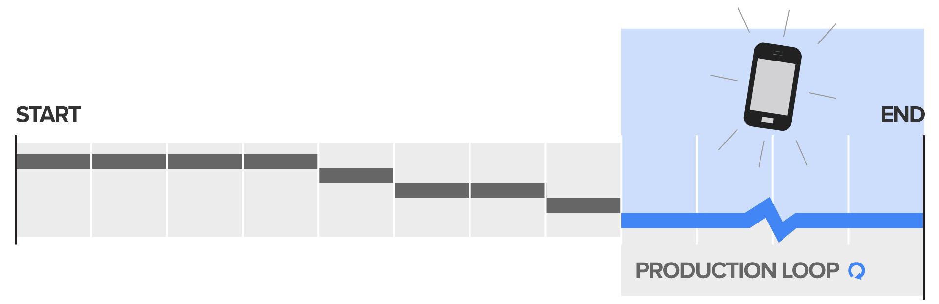 A smartphone was designed and now actual production is ready to begin. Production would continue until it was decided at an unknown time in the future to halt the production.EXAMPLE