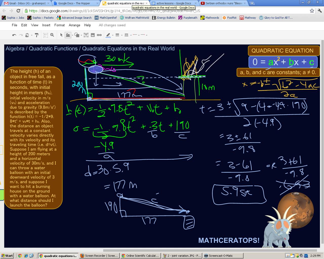 In this lesson, we'll use our knowledge of quadratic equations to figure out how far away from a burning tower I'd have to drop a water balloon while flying toward the tower at 30m/s, 200m above the ground!