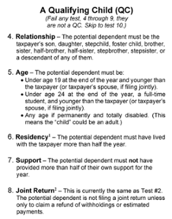 As mentioned earlier, a dependent is either a qualifying child (QC) or a qualifying relative (QR).