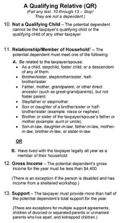 For an individual to be a qualifying relative (QR) of a taxpayer, an individual must satisfy four tests: