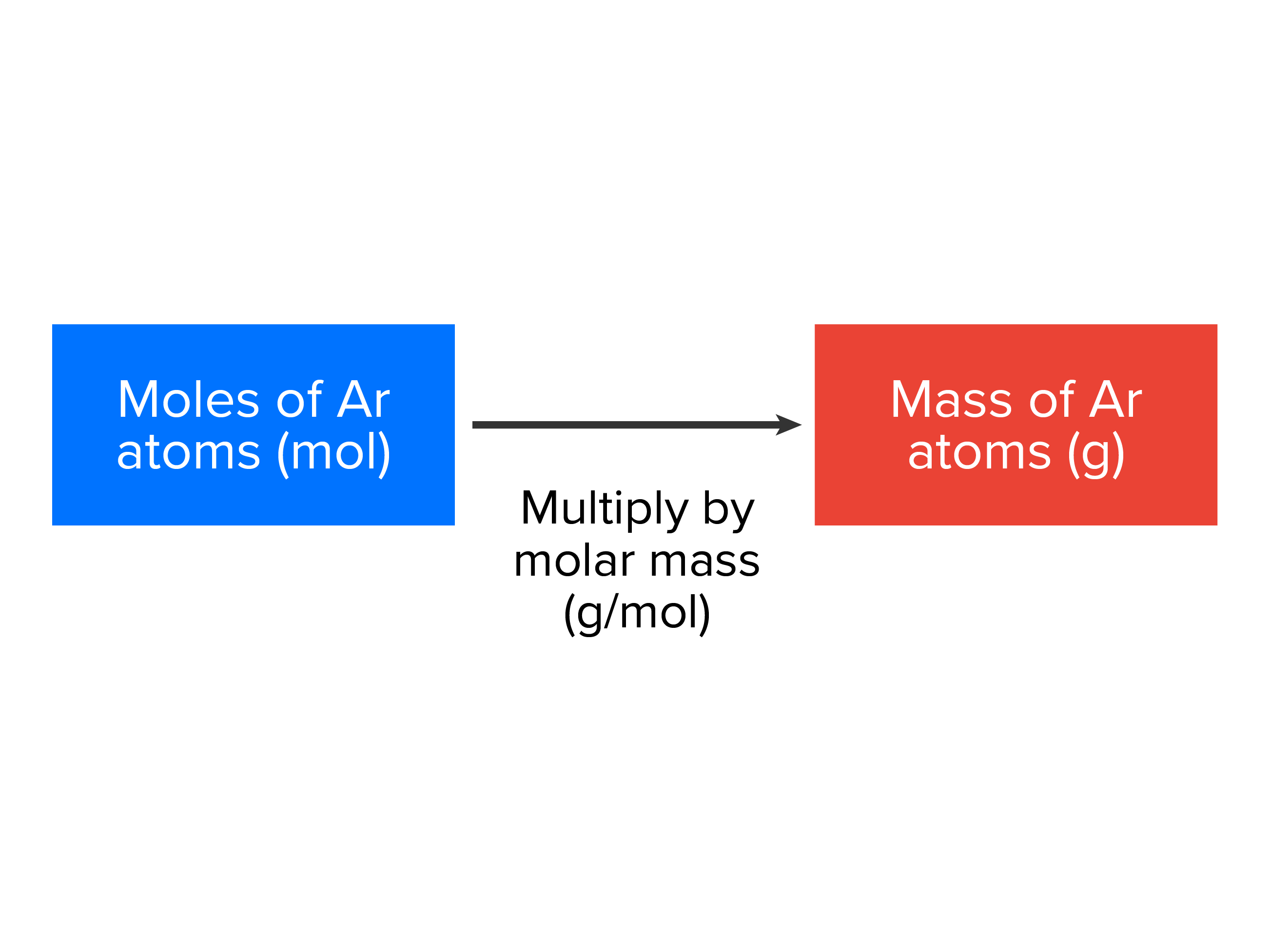 | moles x molar mass = grams |