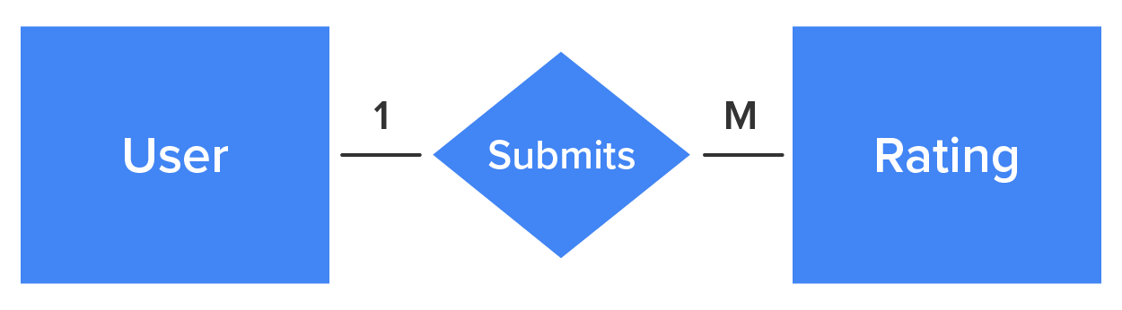 A user can submit multiple ratings, and a rating can only belong to a single user (1:M).
