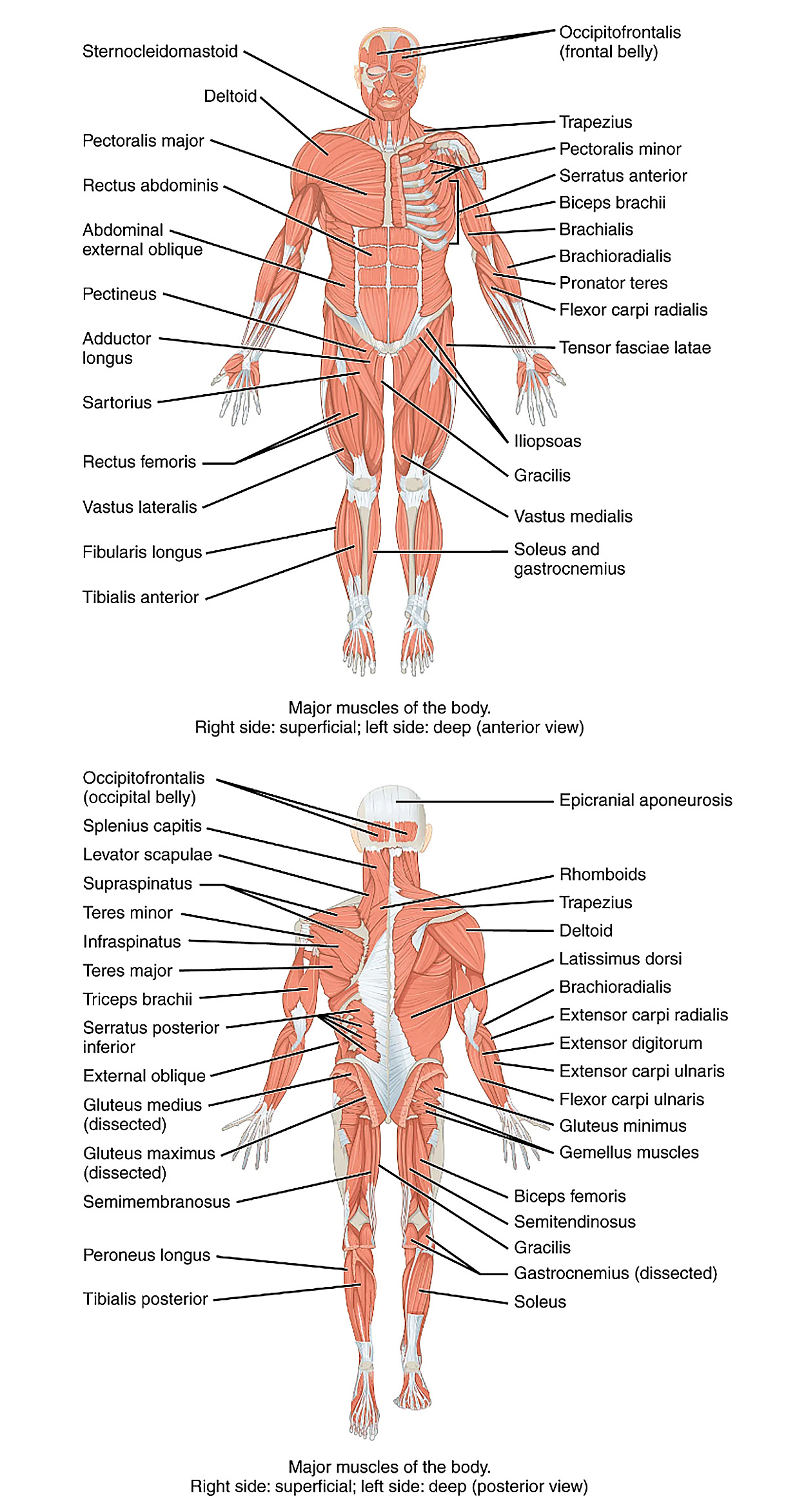 In the lesson titled “Cardiovascular Training Principles”, you learned about type I, aerobic ‘slow twitch’ fibers, and type II, anaerobic ‘fast twitch’ fibers. This concept is also relevant to resistance training. Recall that type I fibers are suited for endurance-type activities by being more fatigue resistant and able to work at lower intensities for long periods of time. Conversely, type II fibers are used in high-intensity activities of short duration. Everyone has both type I and type II muscle fibers in their bodies, though the proportion can differ based on genetics and training. Certain muscles in your body have higher densities of one type than the other.