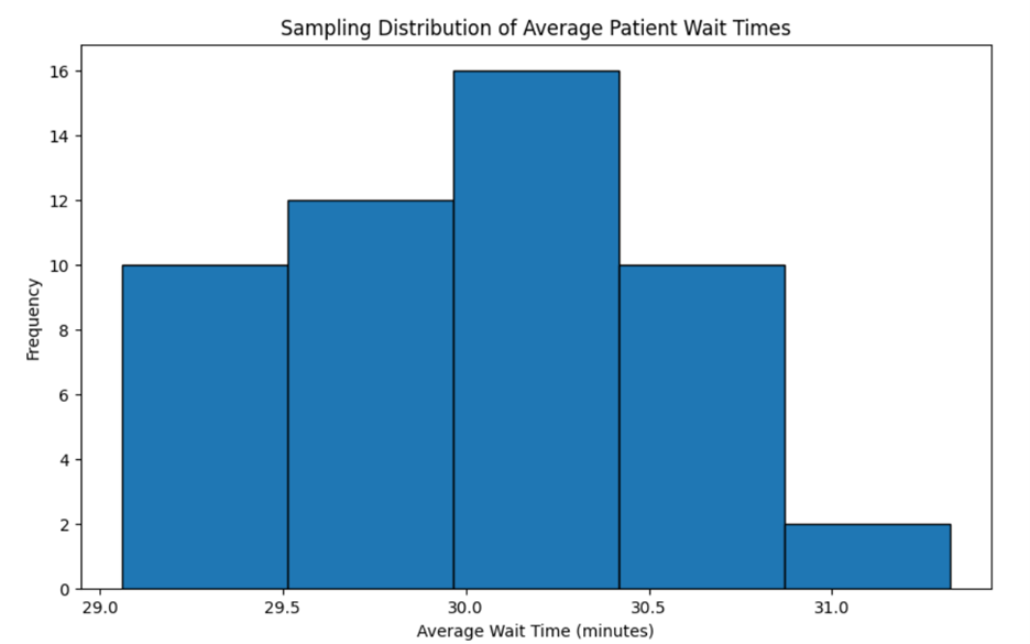A hospital wants to know the average wait time for patients in the emergency room (ER). Instead of tracking every patient, they take several samples of 100 patients each and calculate the average wait time for each sample. The distribution of these averages forms a sampling distribution.