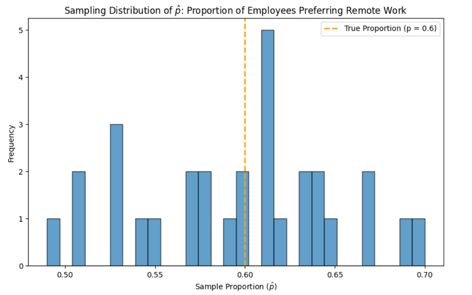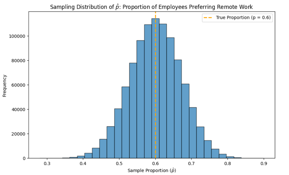 Imagine you’re working for a company that wants to know the proportion of employees who prefer working remotely versus in the office. Instead of asking every employee, you decide to survey a smaller group, or sample, of employees. The proportion of employees in your sample who prefer working remotely is called