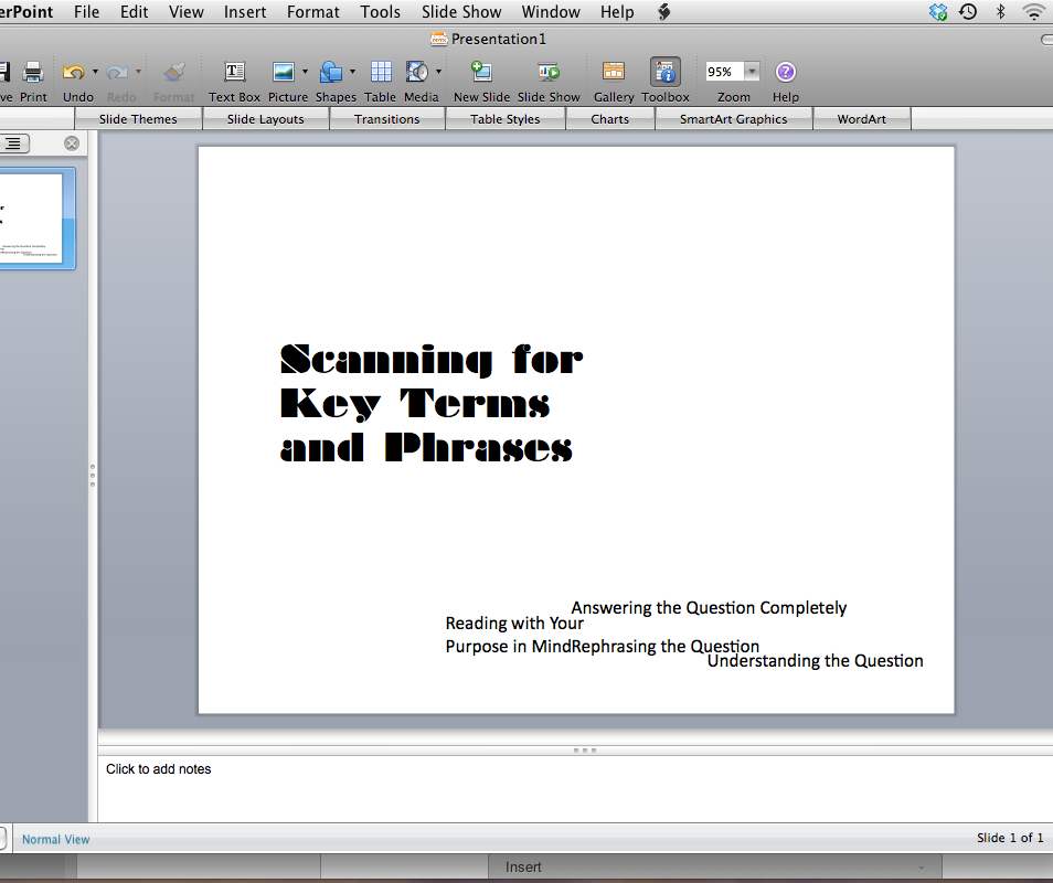 When you are answering a set of questions based on a reading passage, you’ll want to scan the questions for key words and phrases that will point you toward what the question is asking you to do and the information you’ll need to locate within the passage.