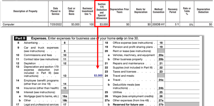 Sherry has a lucrative catering business. During 2022, she purchased a new computer for $3,000. She uses the computer exclusively for business. Per the Tax Code, Sherry will need to depreciate (deduct) the cost over a span of five years unless she elects to deduct the property using the Section 179 deduction.