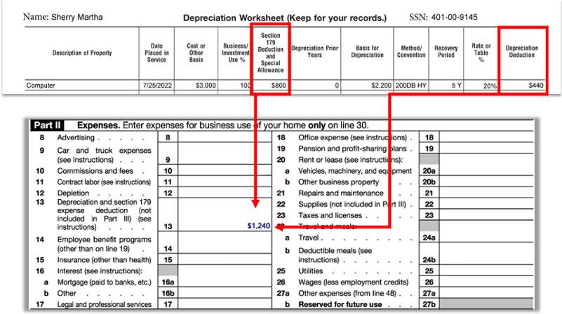 Section 179 of the United States Internal Revenue Code allows a taxpayer to elect to deduct the cost of certain types of property as an expense, rather than being “capitalized” and depreciated. Let’s revisit our taxpayer, Sherry.