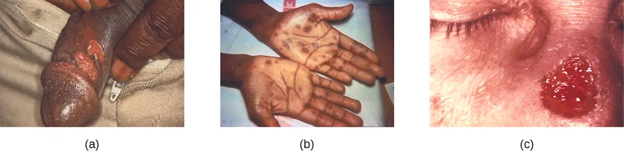 Syphilis is spread through direct physical (generally sexual) contact and is caused by the bacterium Treponema pallidum. This bacterium contains lipoproteins that trigger an immune response in the host, causing tissue damage that may enhance the pathogen’s ability to spread while evading the host immune system.