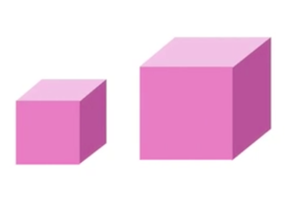 Compare the two boxes above; the box on the right has more volume than the smaller box on the left.