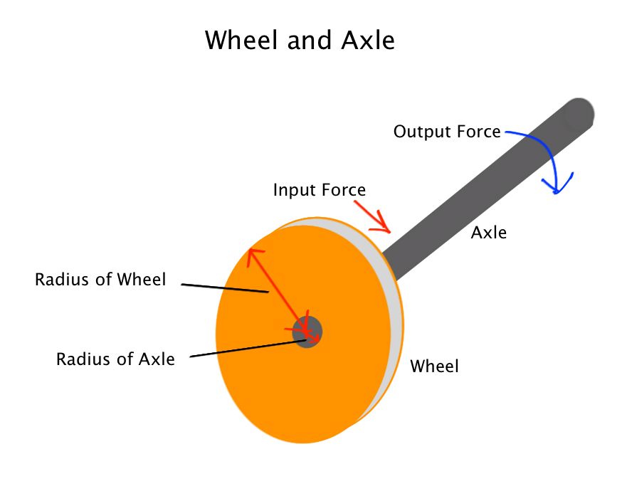 The wheel and axle is a simple machine that consists of two cylindrical objects fastened together. The larger of the two is called the wheel and the other the axle.