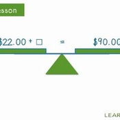 1. Students use algebra to solve equations (of the form px + q = r and p(x + q) = r where p, q, and r are specific rational numbers); using techniques of making zero (adding the additive inverse) and making one (multiplying by the multiplicative inverse) to solve for the variable. (Lesson 22)