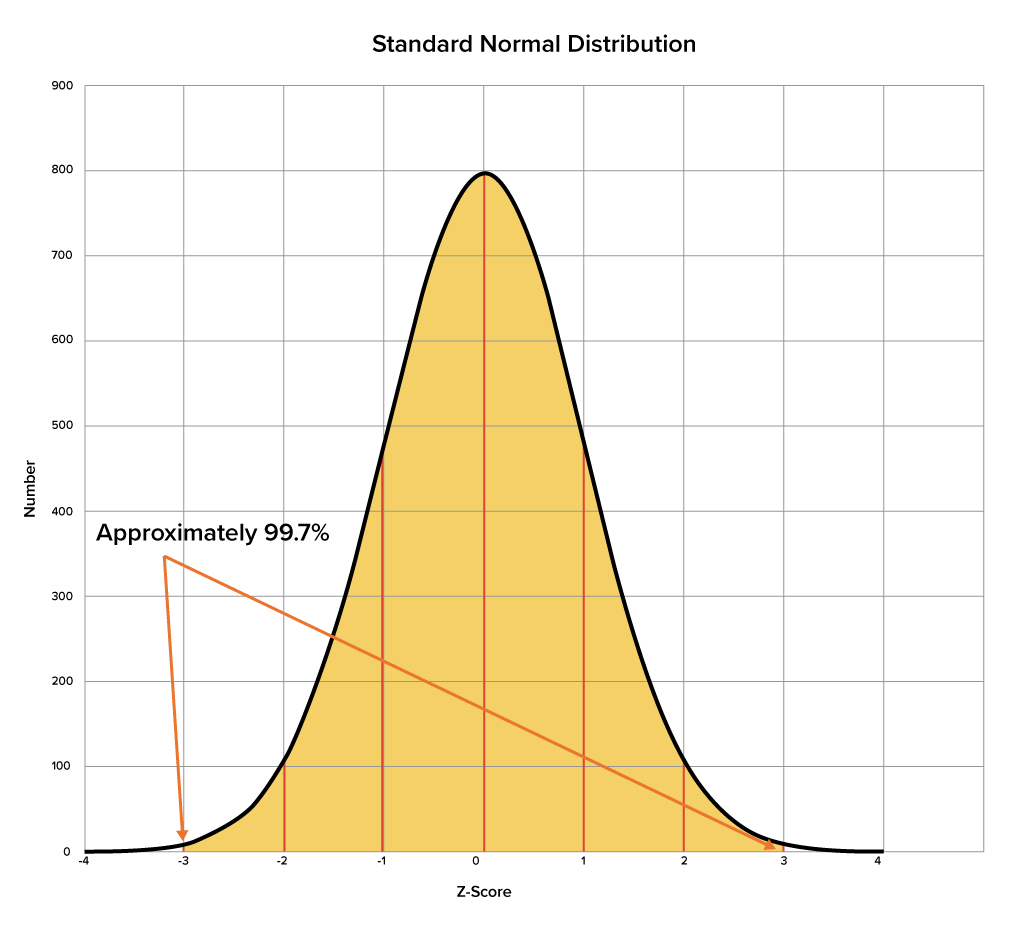 | Z-score values less than -3 and greater than 3 | A z-score less than -3 and greater than 3 account for the remaining 0.3% of the area under the z-distribution curve. |