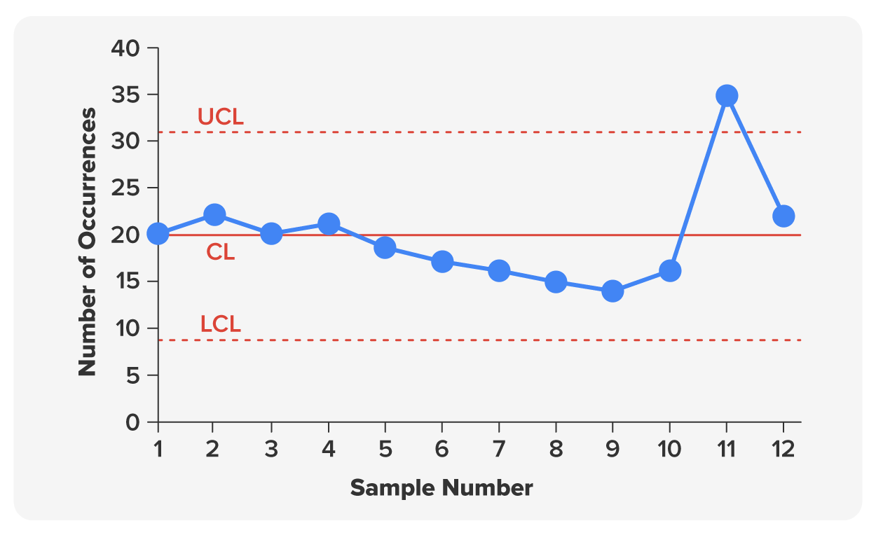 A breakfast cereal packaging line may be designed to fill each cereal box with 500 grams of cereal. A common cause of variation is that a precise weight of 500 grams is hard to achieve with the machinery used. Some boxes will have slightly more than 500 grams, and some will have slightly less. When the package weights are measured, the data will demonstrate a distribution of net weights within 5 grams. The difference would be so slight that customers will not notice. However, if some boxes fell outside of normal variation, such as being off by 50 grams, customers would notice. The operations manager would be concerned and find the source of the issue.The data from measurements is often monitored using control charts. Control charts give a visual display of variation where it is easy to note special causes of variation outside the norm, which is established in data collection. When variability falls inside a normal range, the system is stable. Variability outside the range is excessive variation. In modern manufacturing, this data may be collected by SPC software. The operations manager can view all of the charts on one dashboard; wide variation may even trigger an alert to be sent to the operations manager for their attention based on established detection rules, the algorithms that determine if special action is needed. In software, this may be an alert sent by email or text to the operations manager.