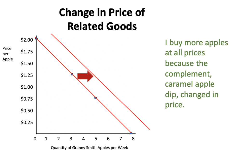 Again, we know that things are always changing. For instance, if you have to take a significant pay cut, or perhaps you read an article saying Granny Smith apples are the least healthy apple, you likely are not going to buy the same amount of Granny Smith apples now, even though the price of Granny Smith apples did not change.
