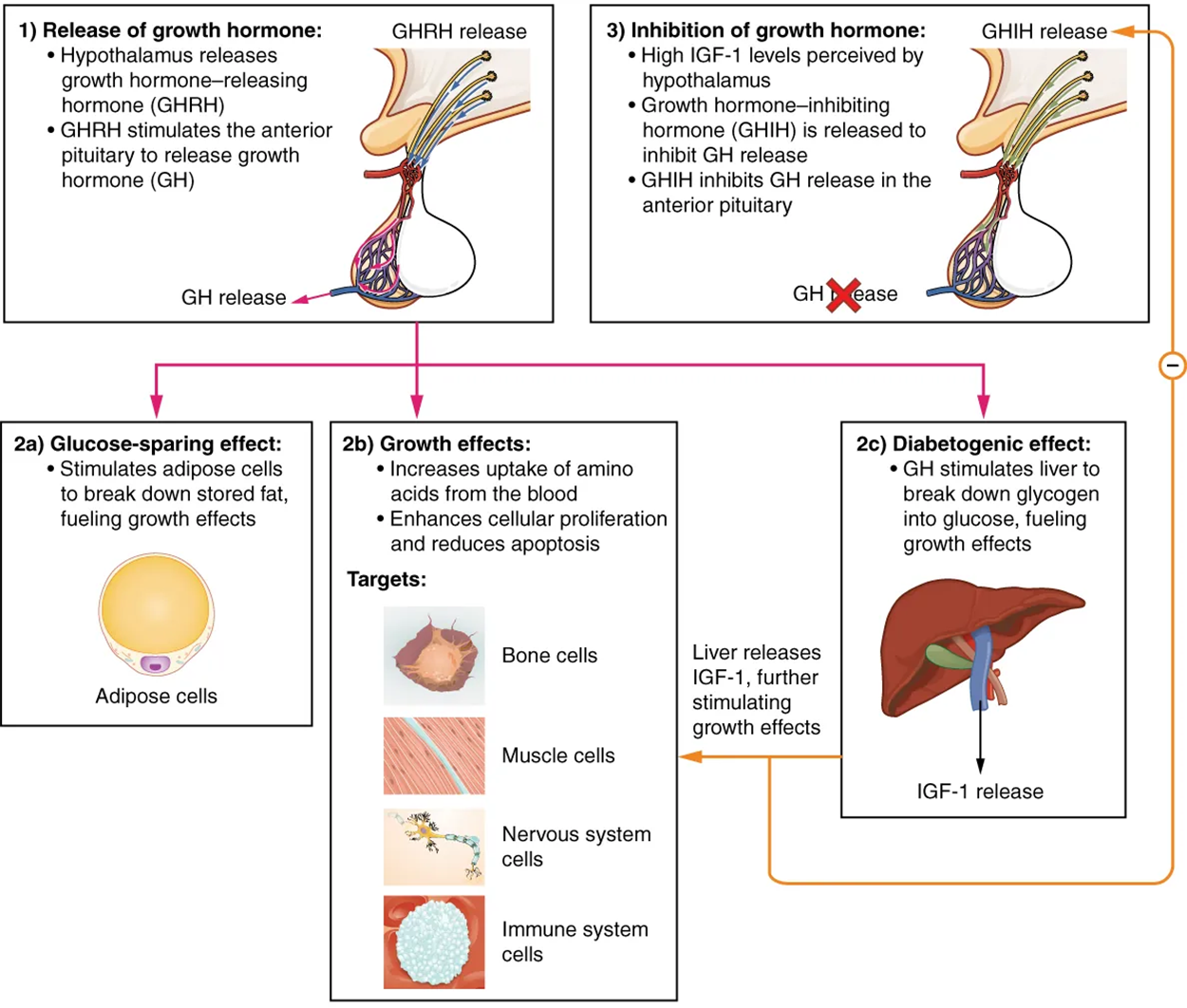 GH is a well-known hormone of the anterior pituitary. The figure below describes how GH helps regulate growth.