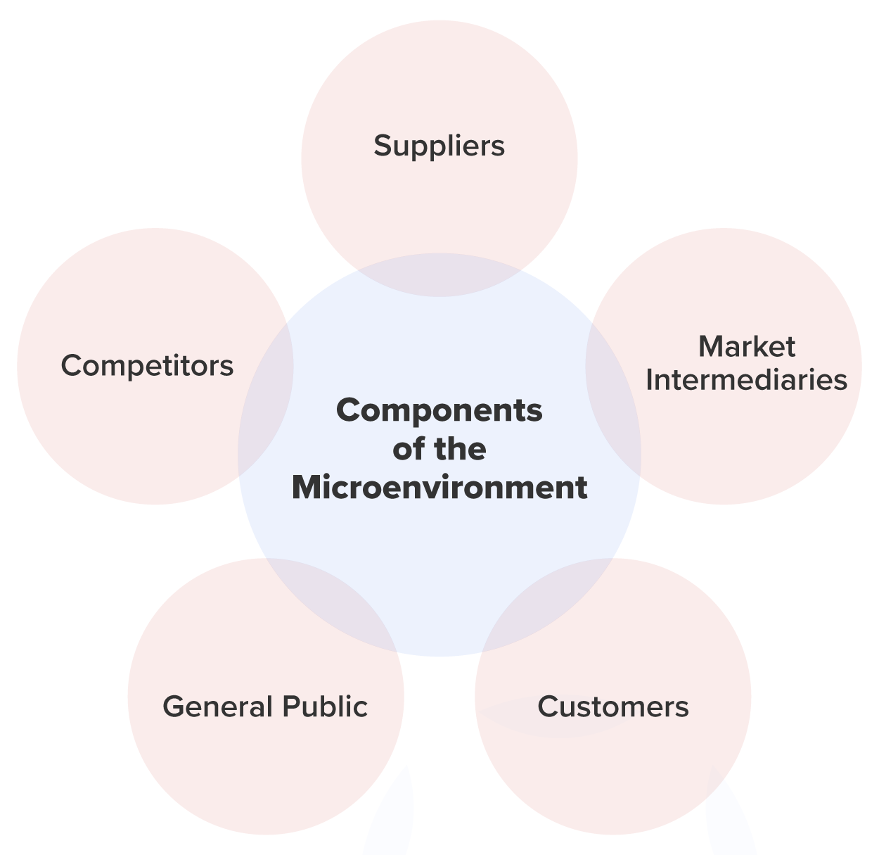 The microenvironment consists of stakeholders outside of the company. Suppliers are companies that provide the raw materials and components necessary for a business to make its goods for consumers. As the costs of materials rise, suppliers pass higher prices on to companies. Market intermediaries are channel partners that are involved in distributing, warehousing, retailing, and delivering products to end users. The more channel partners required from producer to consumer, the higher the cost at each stage. Customers are the end users of a product. One important factor in the dynamic consumer market is the increasing focus on diversity, equity, inclusion, and belonging. The general public consists of individuals who may or may not have involvement with the business but whose opinions about the industry can influence consumers. The general public can become advocates for or against companies based on their policies. Competitors make and sell products that are related or complementary to those that marketers design, promote, and distribute.