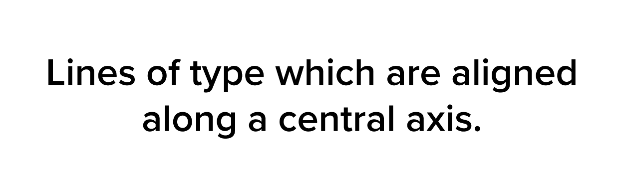Centered alignment means the text is positioned in the middle and distributed evenly along a central axis.