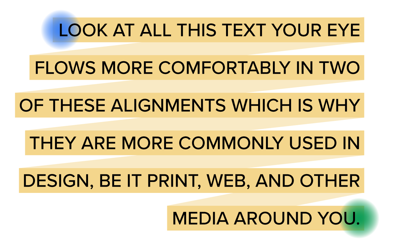 Left and justified alignments have the most uniform shape. They are tidier and almost create a square or rectangular form, allowing for a smoother eye flow.
