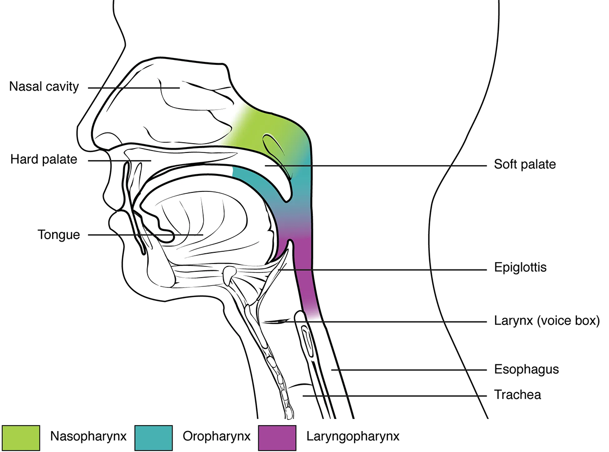 Divisions of the Pharynx—The pharynx is divided into three regions: the nasopharynx, the oropharynx, and the laryngopharynx.
