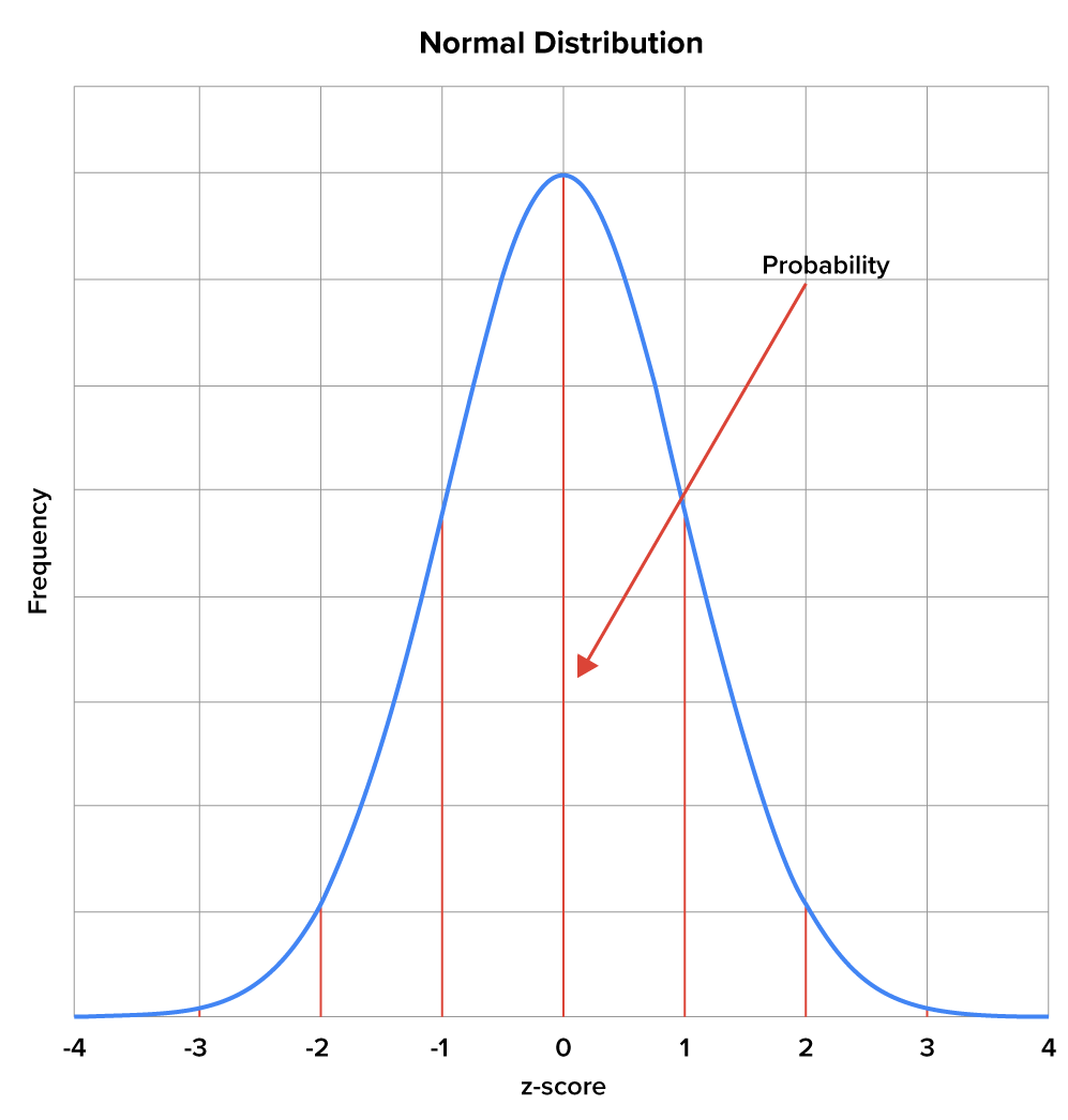 The graph you see here is that of a standard, normally distributed variable, otherwise known as a z-distribution. Because they allow you to know the position of a value in a normal distribution, z-scores are important. When you know a z-score associated with the value of a variable, you are able to determine the likelihood that an event will take place. Simply having a solid understanding of z-scores and how they are associated with probability allows you to easily determine the likelihood of an event occurring.