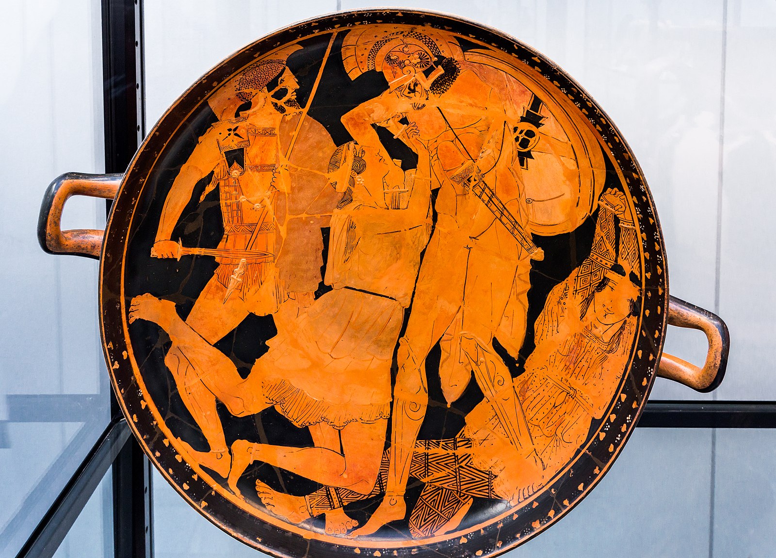 Scholars of Greek art have given the person who painted this vessel the name of the Penthesilia Painter in reference to the subject matter. They think that this artist painted other Greek vases based on style. Is this object a masterpiece? Is this person who created this work an artist or genius?