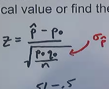Now, step 3, we need to calculate a test statistic and compare to a critical value or find a p-value. All right. So the test statistic we're going to use here is z. We're going to use a z-score. And our z-score formula for a proportion is going to be p hat, our sample proportion, minus p0, which is our assumed population proportion.